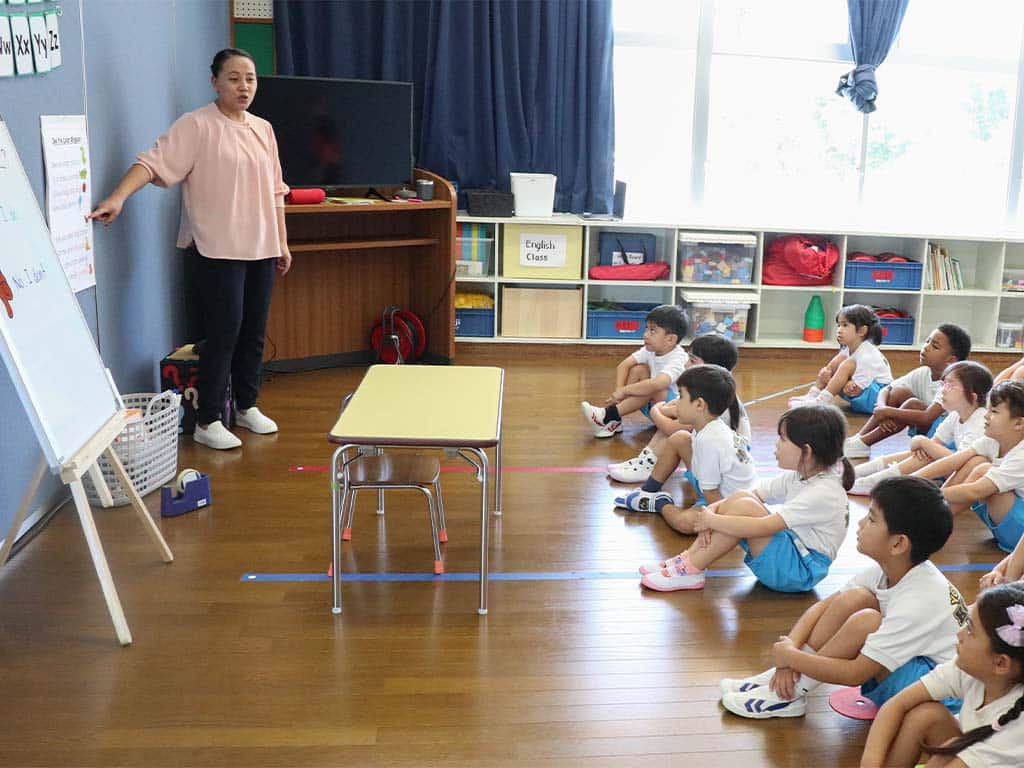 母国語である日本語とは異なる言葉、英語に触れることで、異なる言語や文化への興味、関心、親しみを深め、楽しみながら多様性を培い、人と人とのコミュニケーション力の育成・向上を目標とする。こばと幼稚園では、園児の3割が外国人親をもち、ネイティブ英語で話す幼児も多数在籍しており、日常的に英語と日本語の会話を取り入れた環境にあります。
